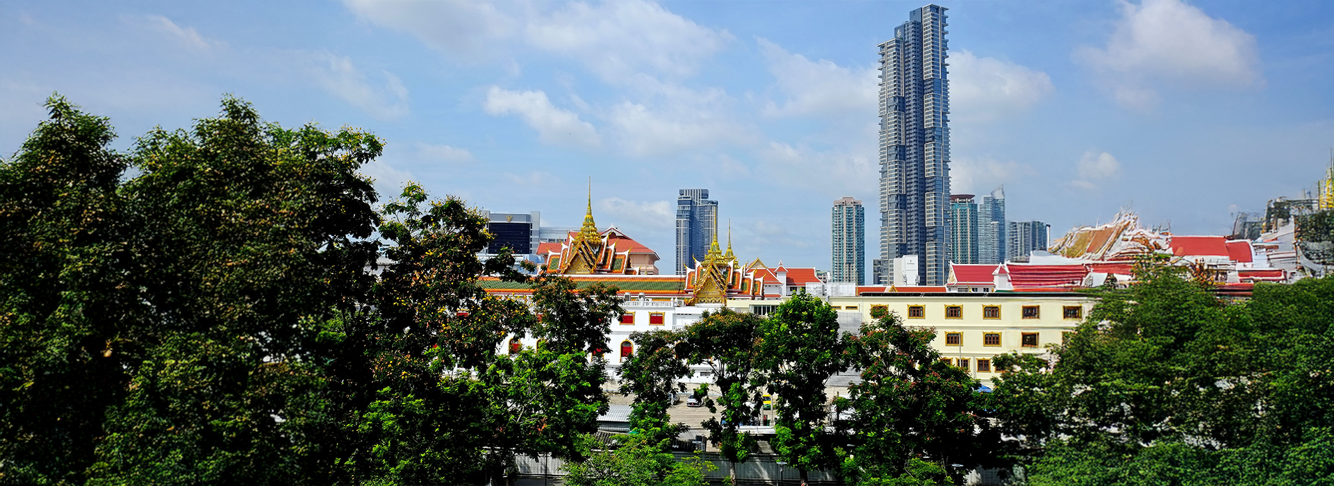 Wat Yannawa seen from BTS Saphan Taksin : A historic temple dating back to the Ayutthaya period. It was originally named "Wat Khok Krabue" before gaining royal temple status.