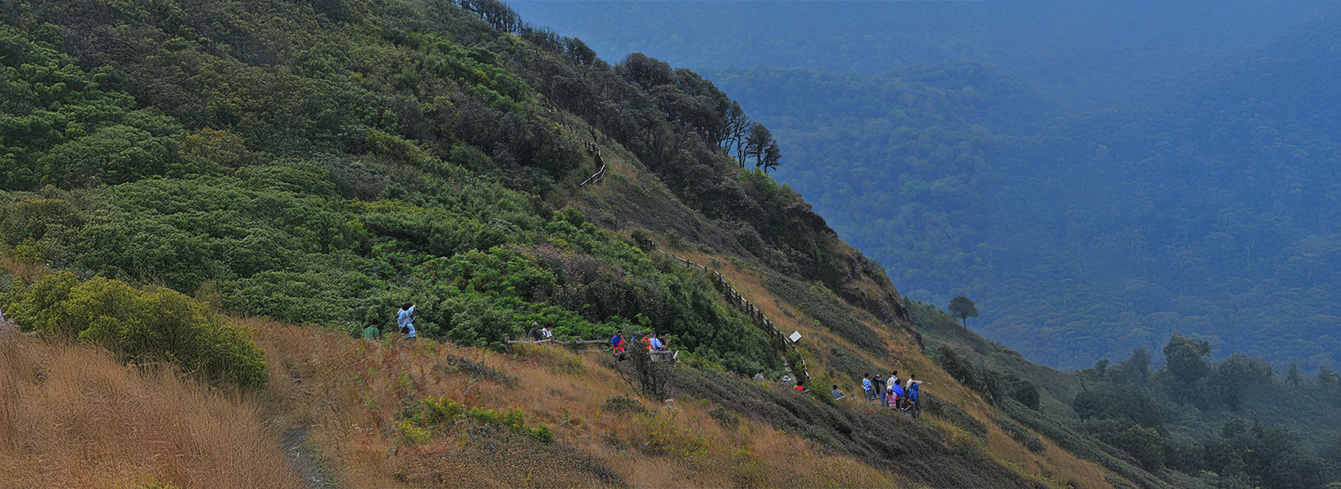 On Doi Inthanon, there are two large pagodas: the Naphaphonphumisiri pagoda and the Naphamethanidon pagoda. During some parts of the trekking at Kiew Mae Pan, if the sky is clear, you can clearly see the pagodas.