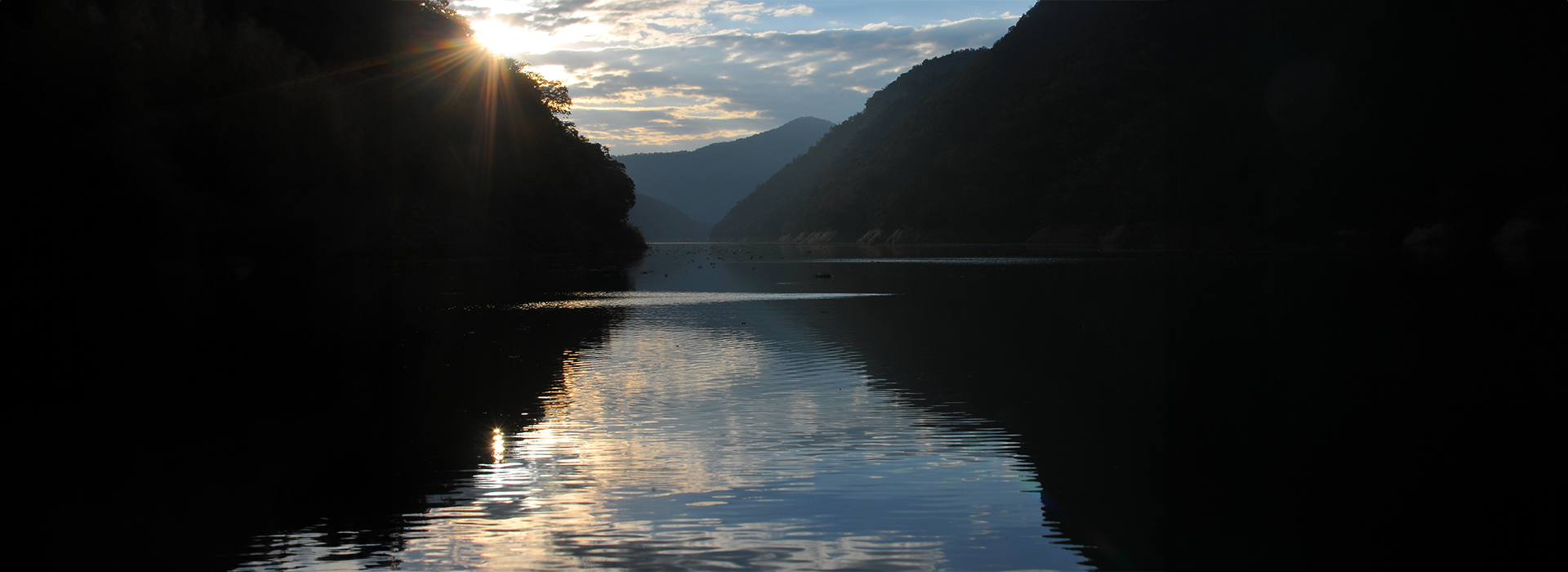 A magical morning scene as mist blankets Mae Ping Lake, creating a dreamy and serene atmosphere.